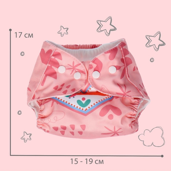 Многоразовый подгузник «Звезды», 3-15 кг, цвет белый, Крошка Я