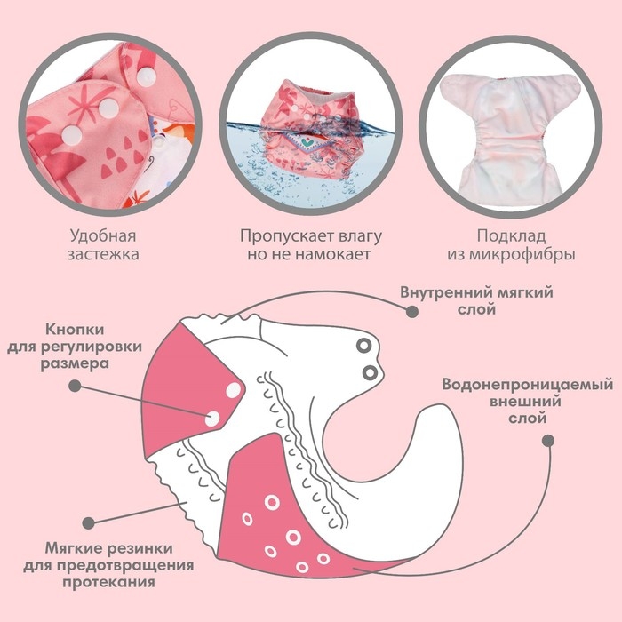 • Подгузник имеет удобный кармашек для вкладыша;