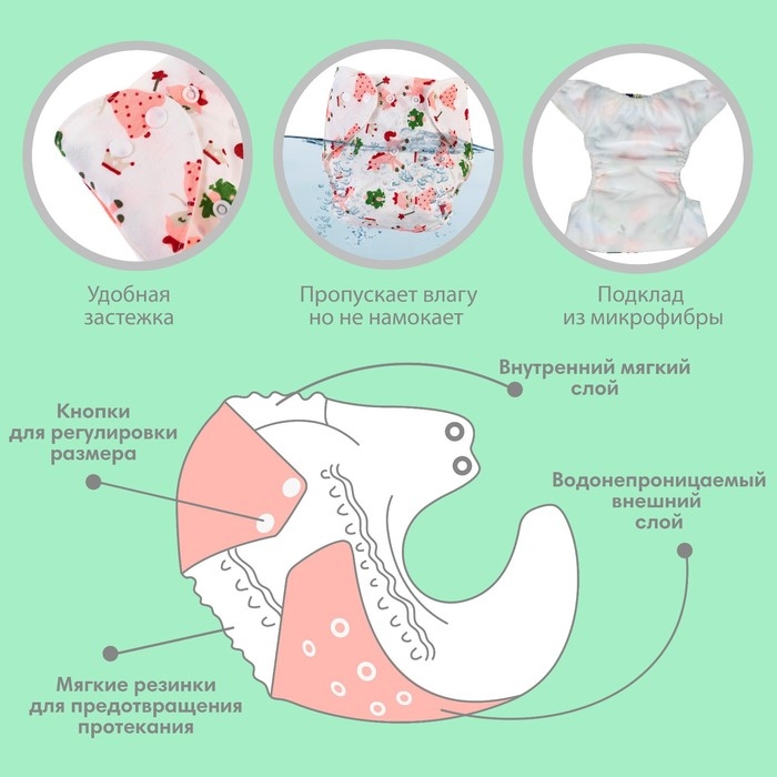 • Размер подгузника универсальный, подходит для детей от 3 до 15 кг, от рождения до 3 лет;