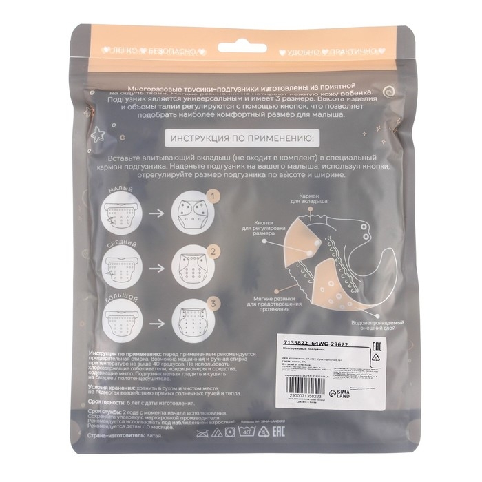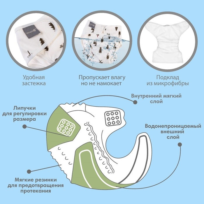 • Подгузник имеет удобный кармашек для вкладыша;