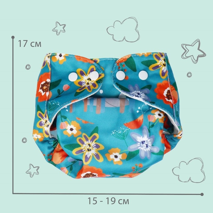 Многоразовый подгузник «Звезды», 3-15 кг, цвет белый, Крошка Я