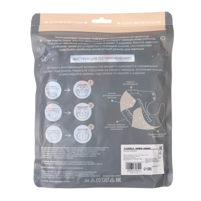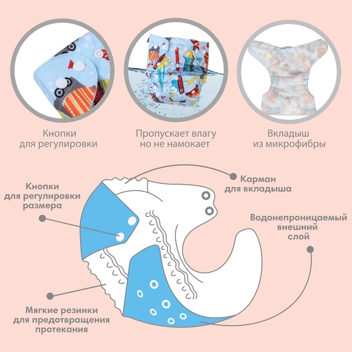 • Подгузник имеет удобный кармашек для вкладыша;