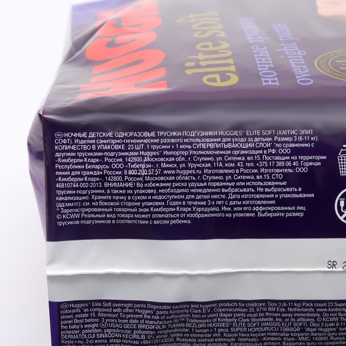 Трусики-подгузники ночные Huggies Elite soft (6-11кг) 23шт.