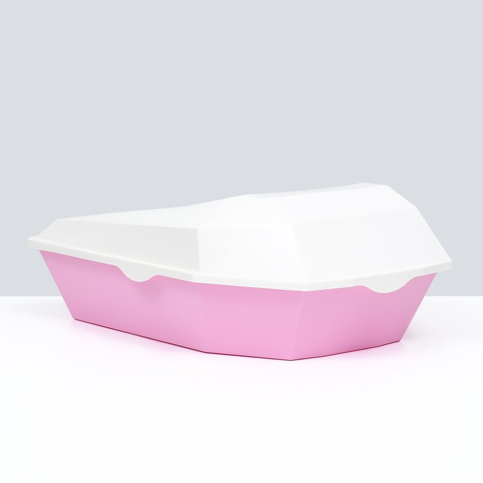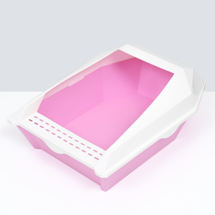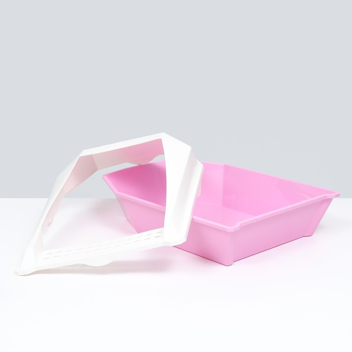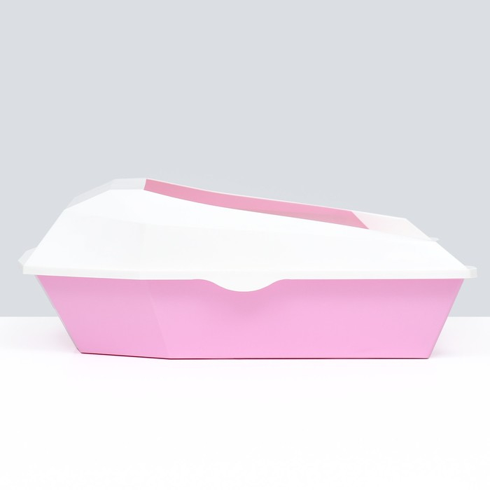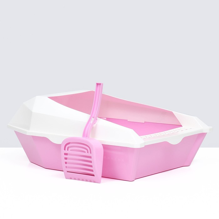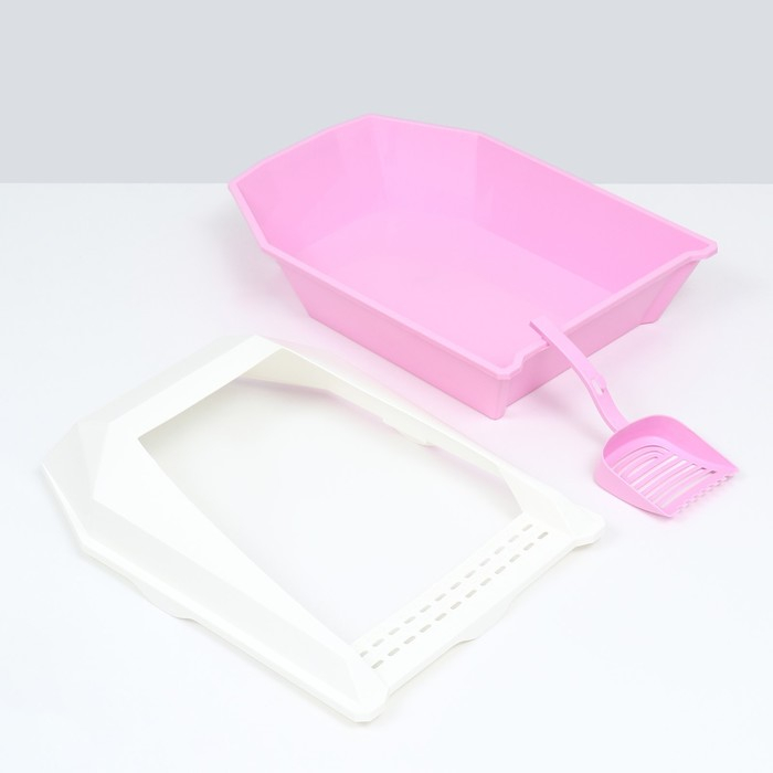 Туалет для кошек фигурный с бортом с совком, 54 х 38 х 20 см, бело-розовый
