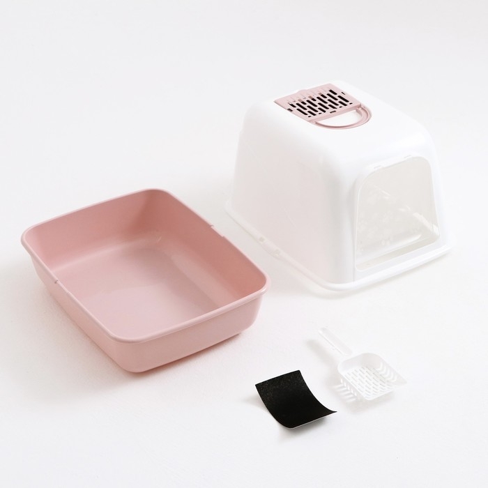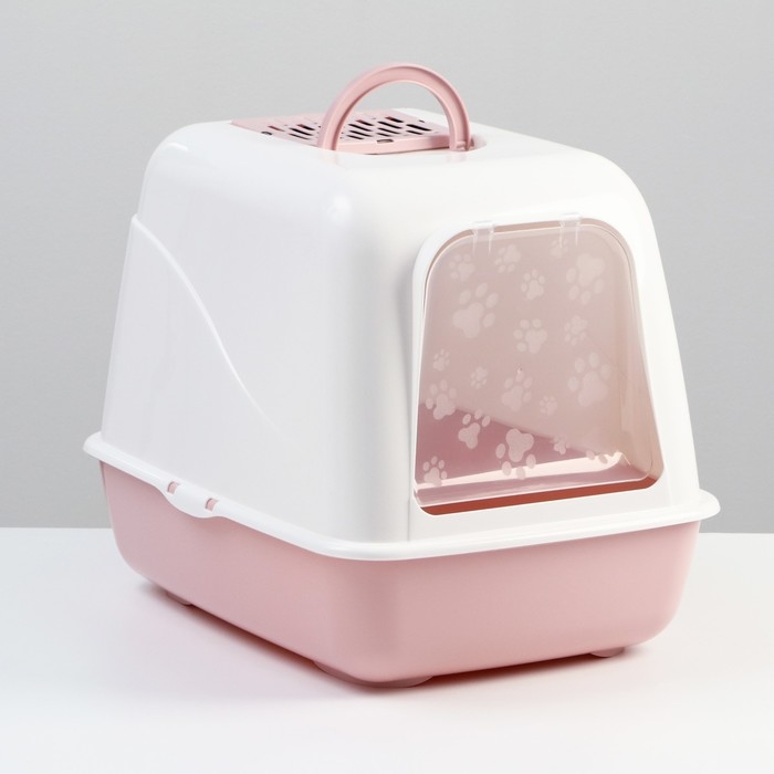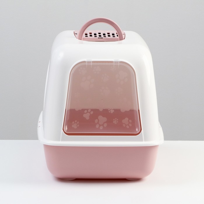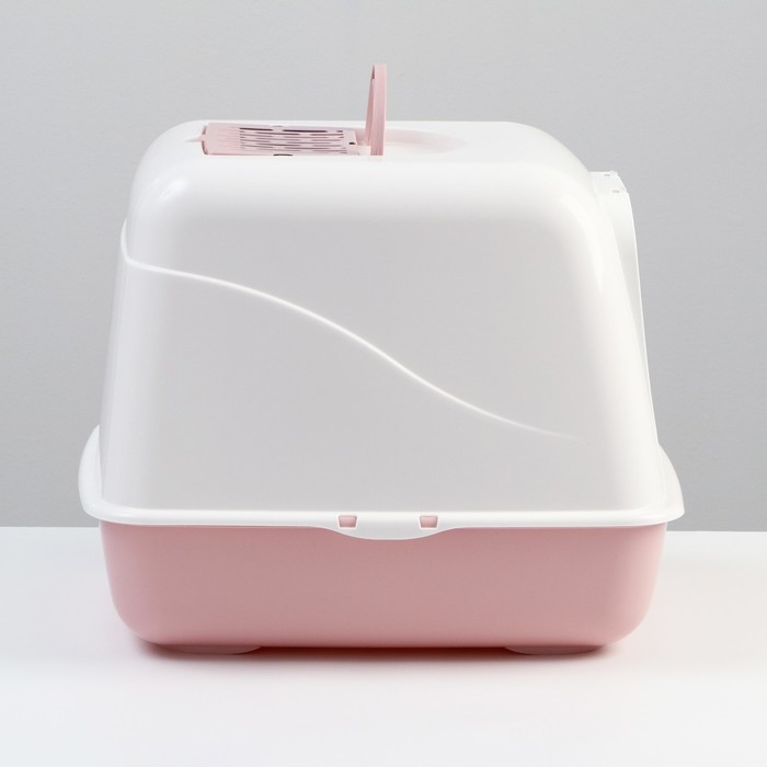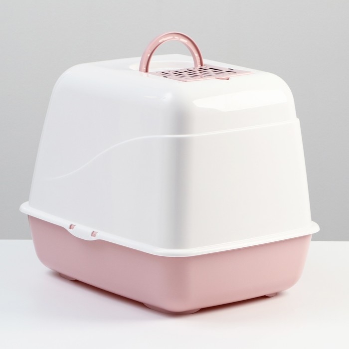 Туалет для кошек "Лекси" закрытый бело/розовый 50,5 х 39 х 41 см