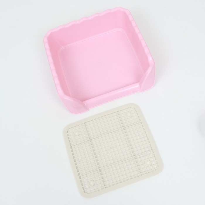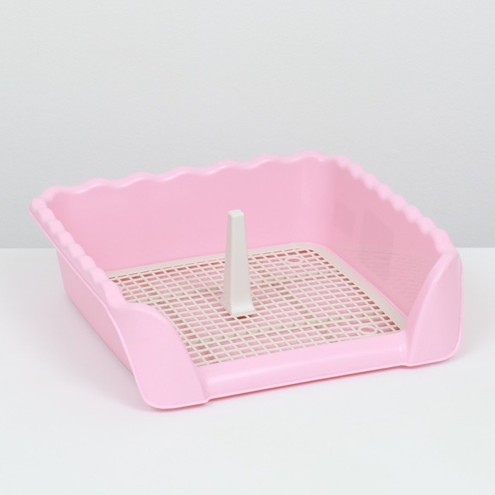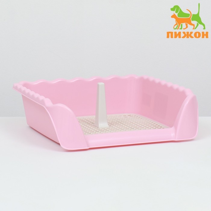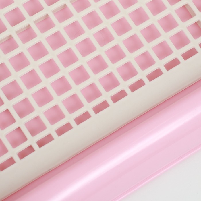 Туалет для собак 46,5 х 35,5 х 5,5 см, со стенкой, съёмной решеткой и столбиком, розовый