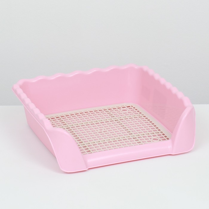 Туалет для собак с высокими бортами и съемной сеткой 38х36х12 см, розовый