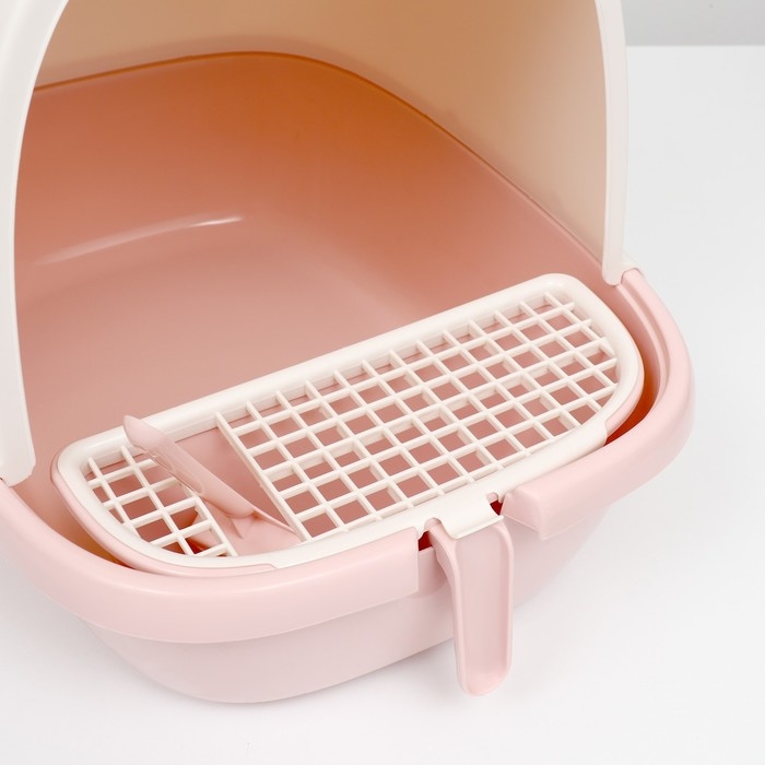 • Высокие борты, стенки и закрытая конструкция лотка обеспечивают чистоту в доме, блокируют запахи, наполнитель не разлетается по сторонам.