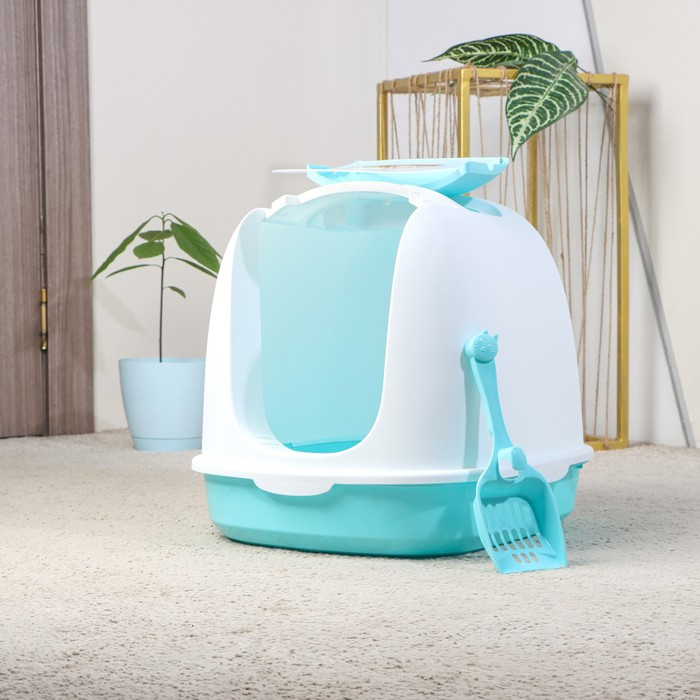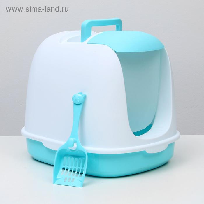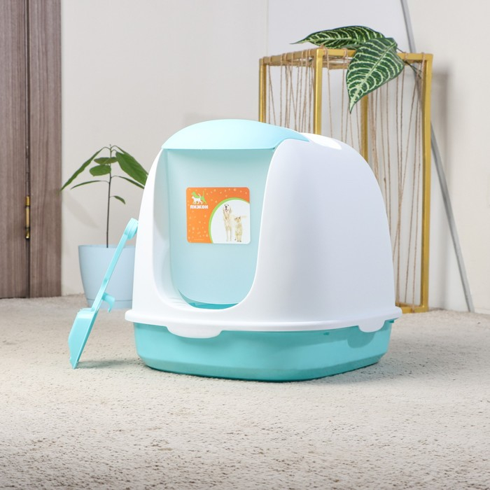 Туалет закрытый с совком, 47 х 40 х 39 см, бело-голубой