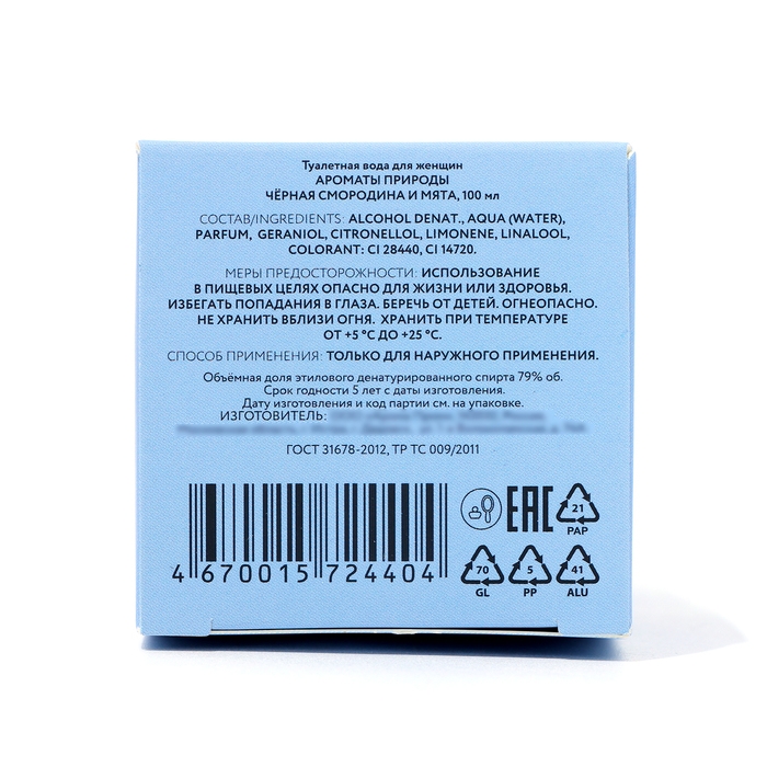 Туалетная вода Ароматы Природы "Чёрная Смородина и Мята", 100 мл
