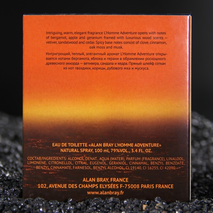 Интригующий, теплый, элегантный аромат Alan Bray L’HOMME Adventure открывается нотами бергамота, яблока и герани в обрамлении роскошного древесного аккорда - ветивера, сандала и кедра. Пряный шлейф соткан из нот гвоздики, корицы, дубового мха и мускуса.
