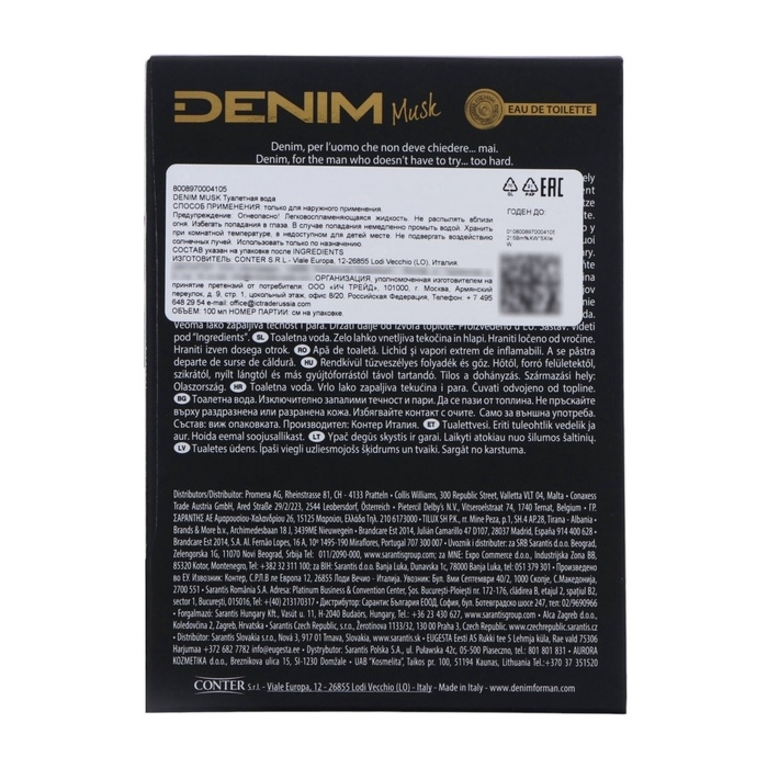 Обладатели Denim хорошо разбираются в моде, отличаются чувством стиля и являются истинными ценителями прекрасного во всех жизненных проявлениях. Туалетная вода, произведенная в Италии, – это оригинальный способ сказать мужчине о своих чувствах, это отличный подарок на юбилей, Новый Год, 23 февраля или без повода, который всегда порадует вашего партнера.