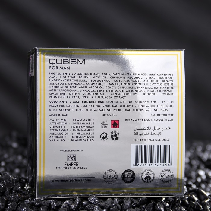 Туалетная вода для мужчин «Qubism», 100 мл Классический пряный фужерный парфюм для решительных мужчин, умеющих достигать своих целей. Кардамон, итальянский лимон и кориандр в начале композиции плавно сменяются аккордами пачули, герани и лаванды. В основе шлейфа - дубовый мох, теплая амбра, кожа и лабданум.