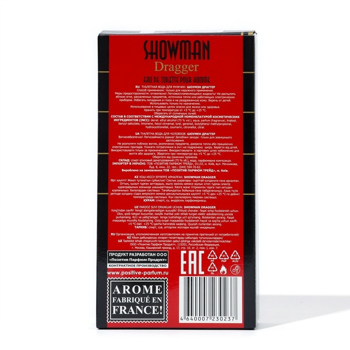 Завершающие ноты включают ваниль, мускус и амбру, создавая глубокую и чувственную базу, которая делает этот аромат привлекательным и стойким. Showman Dragger подходит для современных мужчин, которые ищут аромат, который подчеркивает их собственную утонченность и стиль.