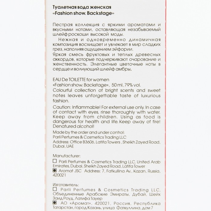 Состав: alcohol denat. (79% vol.), water (aqua), parfum (fragrance), butylphenyl methylpropional, tetramethyl acetyloctahydronaphthalenes, methylenedioxyphenyl methylpropanal. nerolidol, linalool, citronellol, hexyl salicylate.