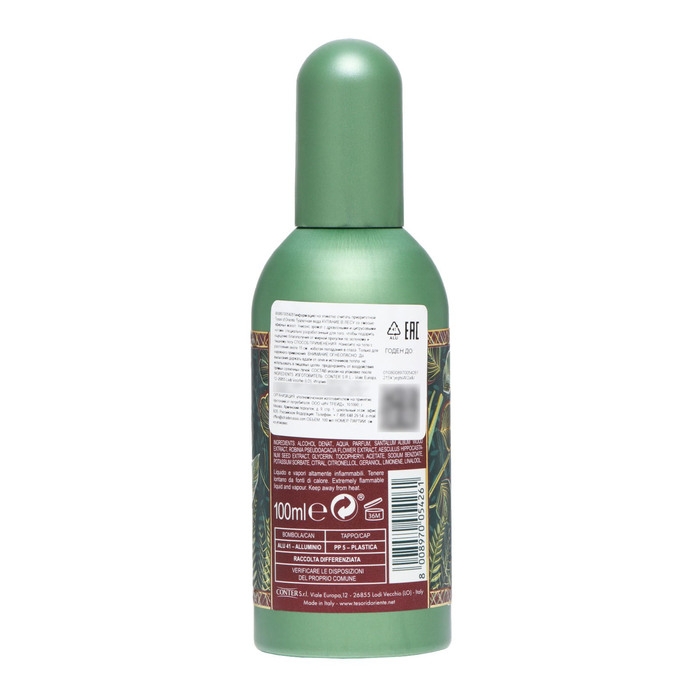 Tesori d’Oriente приглашает Вас окунуться в мир эстетики и великолепия. Уникальная разработка итальянских парфюмеров создает туалетную воду с ярким ароматом, обладающим хорошей стойкостью до 10 часов. Туалетная вода Tesori d'Oriente принадлежит к группе восточных ароматов. Ольфакторное путешествие унесет вас от повседневной жизни: бегство в живописные уголки мира, окруженные бирюзовыми водами, где вы сможете найти свой внутренний покой. Ароматы, произведенные в Италии, созданы на основе натуральных масел, с натуральными компонентами. Продукция вдохновлена древней идеей превратить ежедневный уход за телом в красивый ритуал, с помощью которого можно гармонизировать тело и душу. Парфюмерия данного бренда содержит традиционные восточные компоненты, использующиеся в течение многих веков при изготовлении косметики. Ароматические композиции разработаны ведущими мировыми парфюмерными компаниями и подойдут для подарка самым близким людям, потому что привлекательная и удобная упаковка имеет премиальный вид. Насладитесь роскошью гармонии Востока!