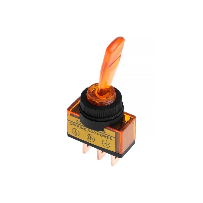 Тумблер однополюсный с жёлтой LED индикацией, 12 В, 20 A, 3 контакта