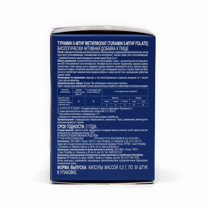 ТУРАМИН 5-MTHF МЕТИЛФОЛАТ (TURAMIN 5-MTHF FOLATE) рекомендуется принимать взрослым, в том числе беременным и кормящим женщинам, по 1 капсуле 1 раз в день во время еды в течение 30 дней.