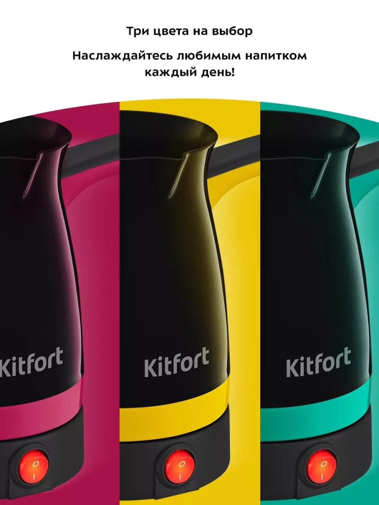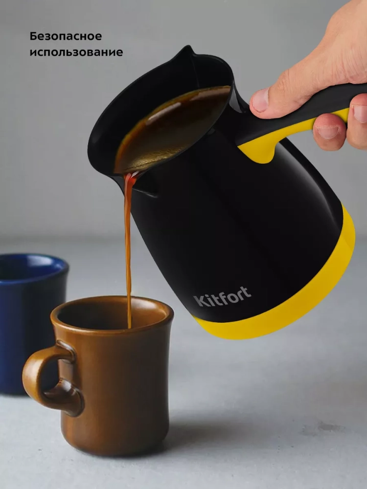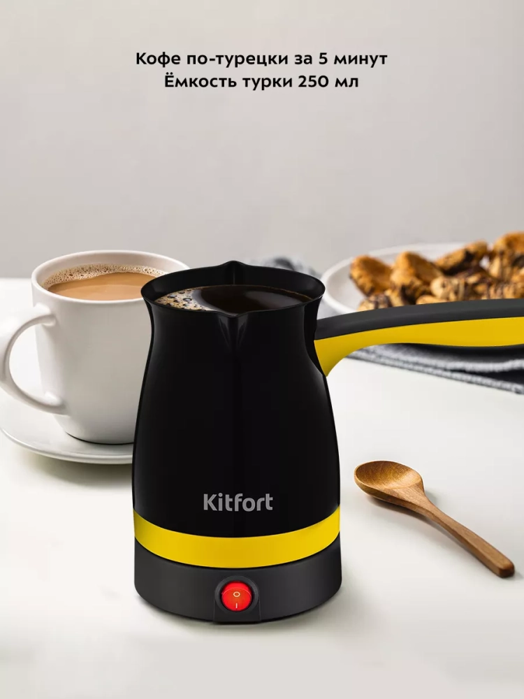Электрическая турка Kitfort КТ-7183 варит кофе по-турецки. С ней вы сможете быстро и легко сварить натуральный кофе на 4 чашки по 60 мл. Устройство состоит из базы и турки.