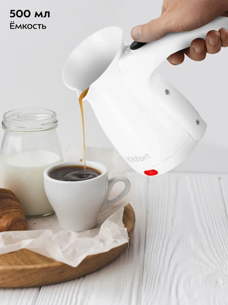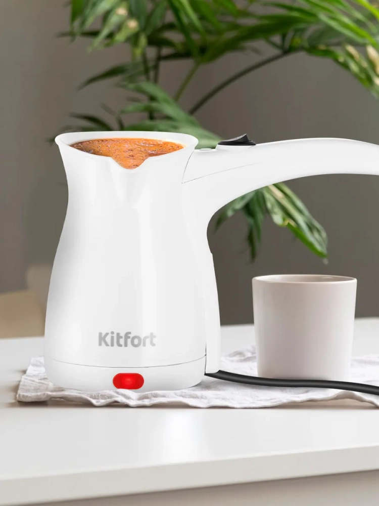 Электрическая турка Kitfort КТ-7450 варит кофе по-турецки. С ней вы сможете быстро и легко сварить натуральный кофе на 8 чашек по 60 мл.