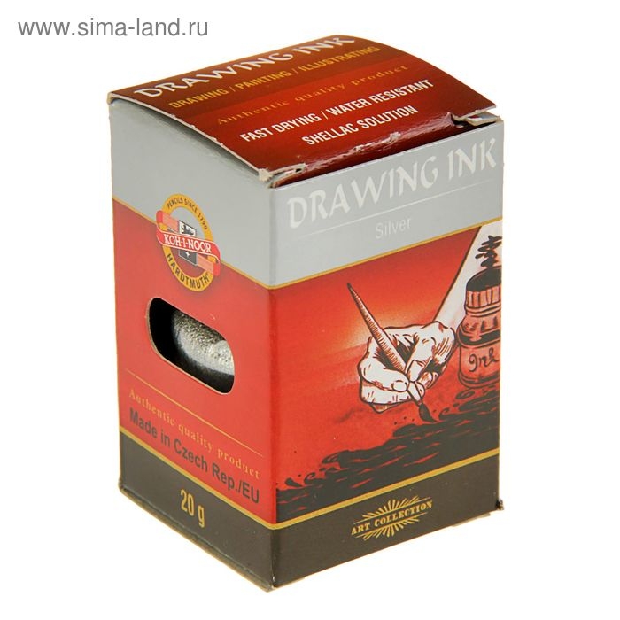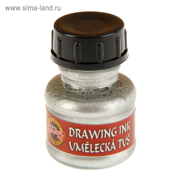 Тушь для письма и рисования художественная 20 мл, Koh-I-Noor, серебряный