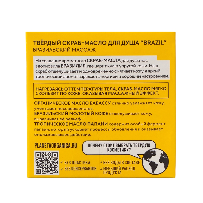 Твёрдый скраб-масло для душа Planeta Organica "BRAZIL", 50 г