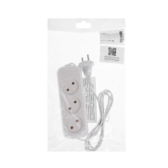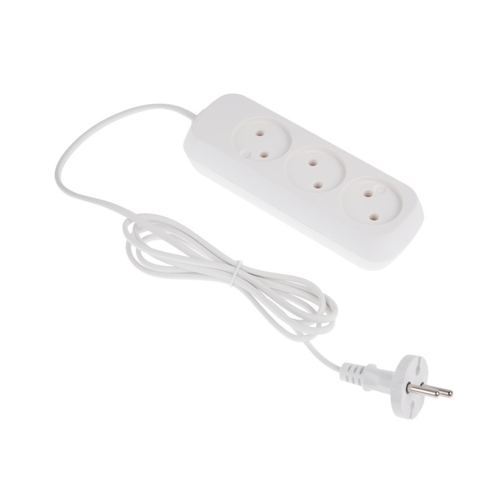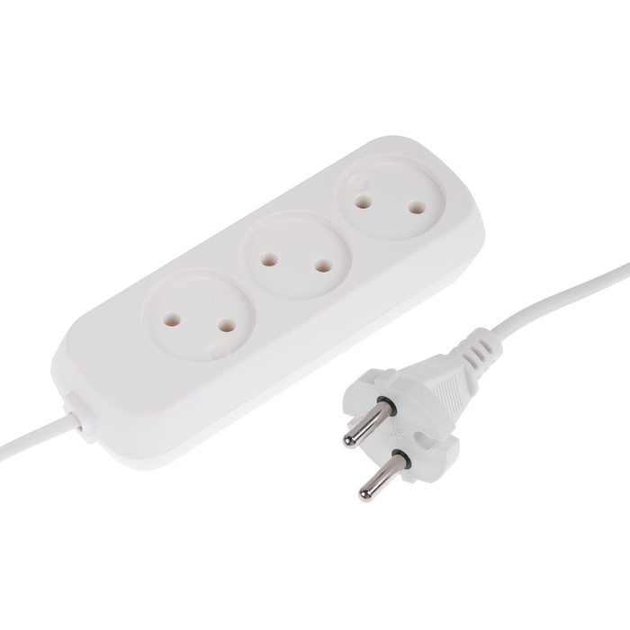 Удлинитель 3 розетки, 1.7 м, 6 А, 1300 Вт, ШВВП 2х0.5 мм2, без з/к, белый