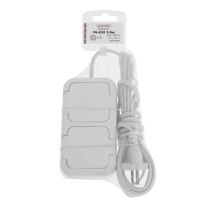 Удлинитель BYLECTRICA У6-222, 2 розетки, 3.5 м, 6 А, 1500 Вт, ПВС 2х0.75 мм2, без з/к, белый