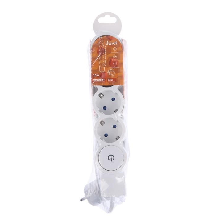 Удлинитель Duwi, 4 розетки, 5 м, 10 А, 2200 Вт, ПВС 3х0.75 мм2, с з/к, с выкл., со шторками