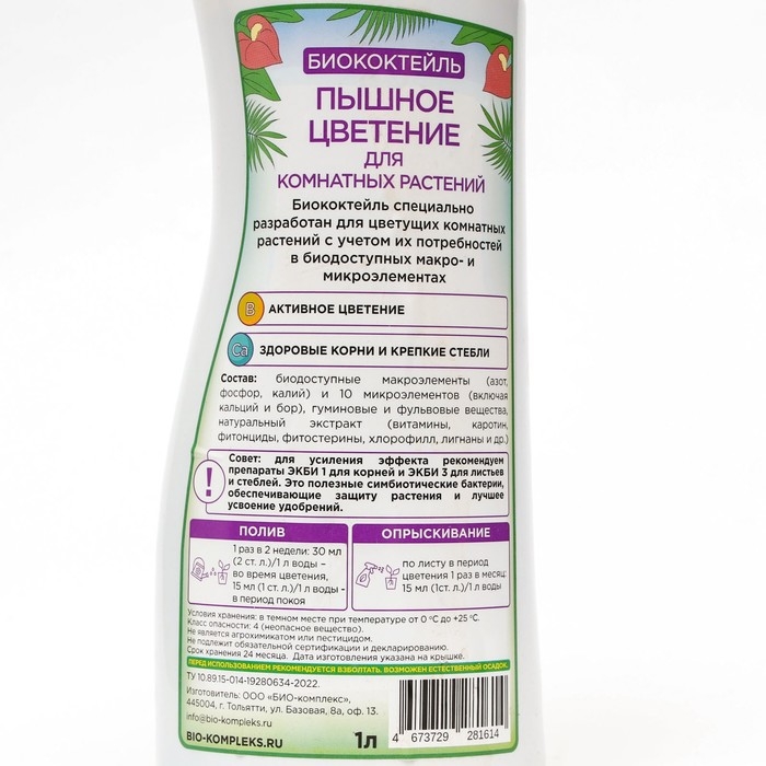 Натуральный состав биококтейля разработан специально для бережного ухода за всеми видами цветущих комнатных растений.