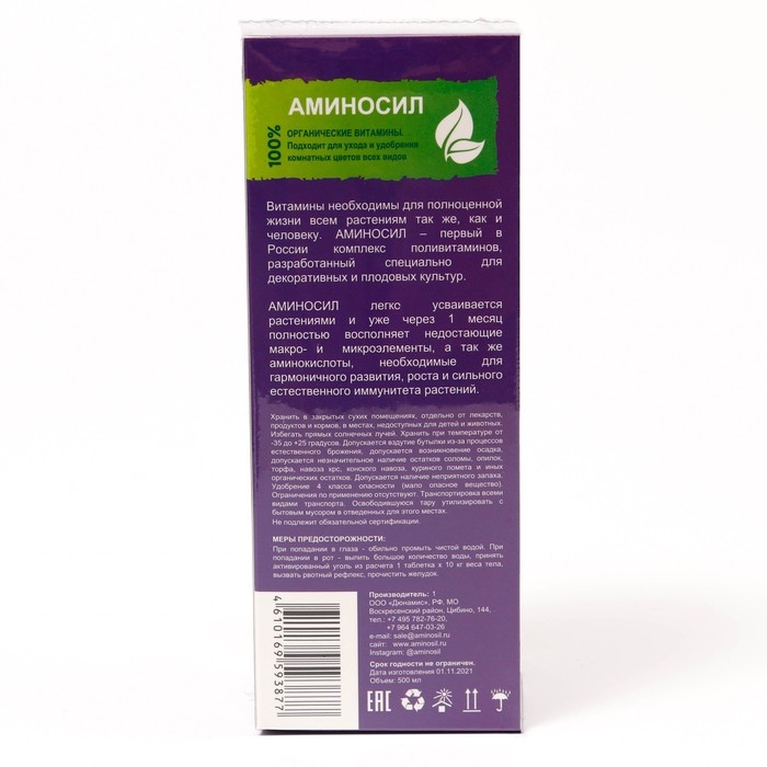 Витамины Аминосил для комнатных цветов это специально разработанный комплексный продукт, который способен обеспечить все необходимые элементы питания для здорового и красивого роста самых разных комнатных растений. Удобрение содержит все важные макро и микроэлементы, которые способны улучшить здоровье и красоту, а также ингредиенты, которые способствуют более интенсивному и длительному цветению. Поможет укрепить корневую систему и улучшить общее состояние растений. Макро и микроэлементы. 40+ аминокислот. Рекомендуется использовать в течение всего периода роста и цветения. Это позволяет достичь максимального результата и обеспечить вашим комнатным растениям все необходимые элементы питания. Если вы хотите обеспечить здоровый и красивый рост своих растений, то удобрение для комнатных цветов - это идеальный выбор для вас. Оно подходит для ухода за самыми разными растениями и поможет создать прекрасный оазис красоты и здоровья в вашем доме. Жидкая подкормка для домашних балконных комнатных цветов (чайная бенгальская полиантовая роза, фиалки орхидеи бегонии).5 мл витаминного концентрата Аминосил разбавить в 1 л воды до образования однородного раствора.Вариант 1: поливать почву и растение получившимся раствором ближе к основанию до полного намокания грунта.Вариант 2: опрыскивать растение получившимся раствором до полного смачивания листьев или протирать листья смоченной раствором салфеткой. Избегать попадания на бутоны и лепестки цветов.Периодичность: подкармливайте растения 1 раз в 2 недели (с мая по октябрь) и 1 раз в 4 недели (с ноября по апрель).Оптимальный набор питательных веществ для всех цветов, выращенных в комнатных условиях;Улучшает декоративность* всех видов комнатных цветов в условиях минимального ухода;Комплексный эффект 4 в1: питание, усиление иммунитета, стимуляция роста и цветения;