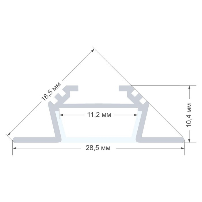 Алюминиевый профиль для светодиодной ленты 08-07 по своей конструкции является накладным угловым, а это значит, что такой вариант профиля идеально подходит для монтажа накладным способом в угол между двумя плоскими поверхностями, а его свечение направлено под углом 45°. Данная модель алюминиевого профиля имеет размер 28,5х10,4х1000мм, и внутри него можно разместить светодиодную ленту шириной до 10мм. В алюминиевый профиль уже установлен рассеиватель белого цвета, изготовленный из светорассеивающего поликарбоната. Такой рассеиватель пропускает 70 % светового потока и делает его более мягким и приятным для ваших глаз, поэтому наиболее часто используется для решения задач по организации декоративного и основного освещения. Также в комплекте с профилем идут заглушки в количестве 2-х шт. Благодаря дробеструйной обработке профиль имеет приятную матовую поверхность, а анодирование сохранит благородный серебристый цвет, защищая профиль от окисления.