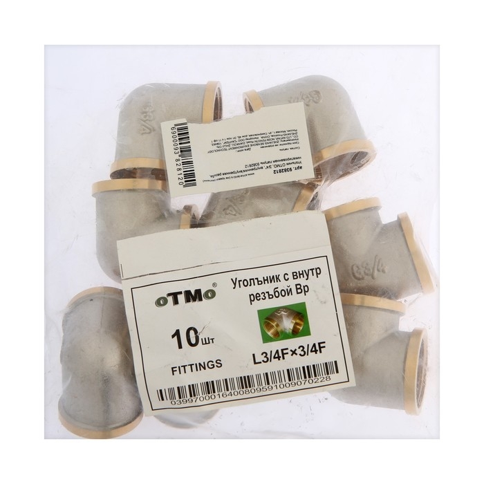 Угольник OTMO, 3/4", внутренняя/внутренняя резьба, никелированная латунь