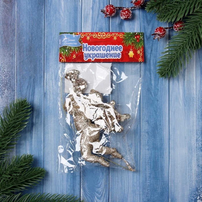 Украшение ёлочное "Ангел с трубой блеск" 13х7 см, золото