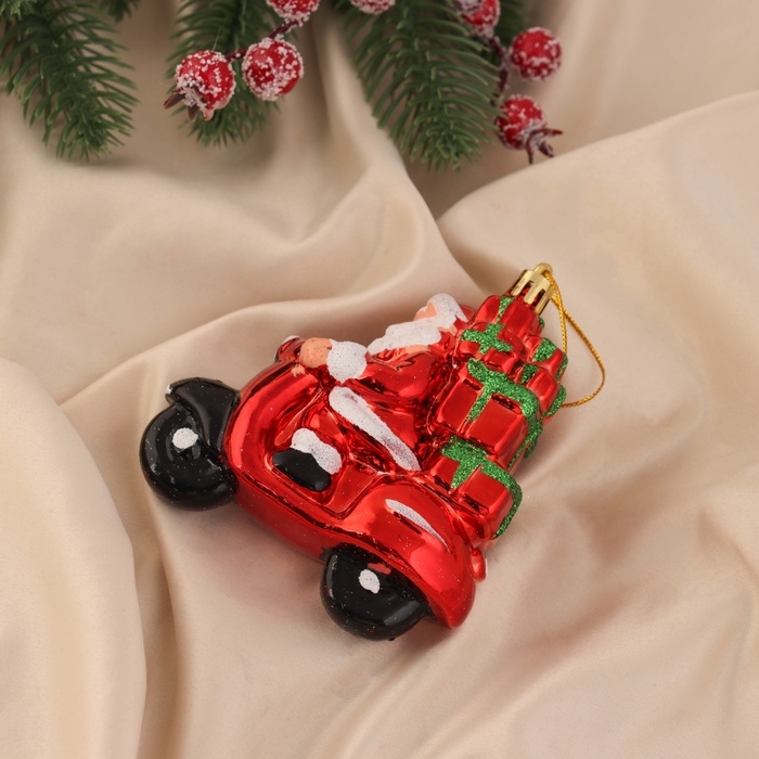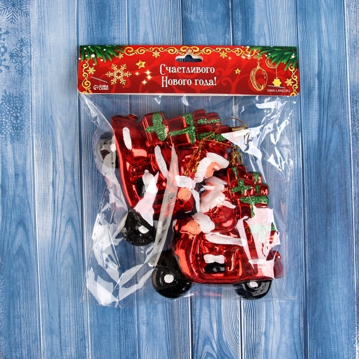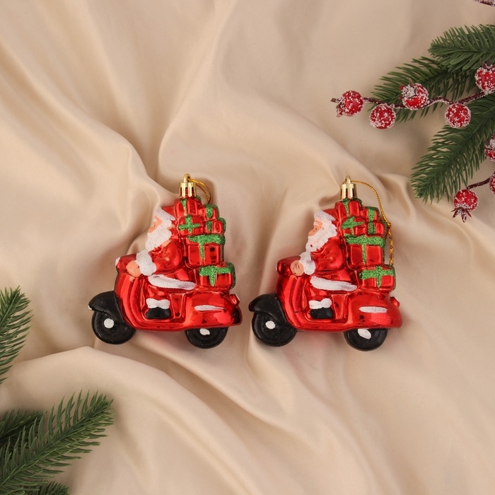 Украшение ёлочное "Дед Мороз на мотике" (набор 2 шт) 10х9,5 см, красный