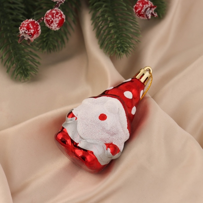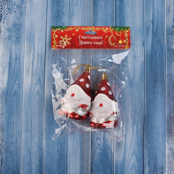 Украшение ёлочное "Гном, колпак в горох" (набор 2 шт) 9х4,5 см, красный