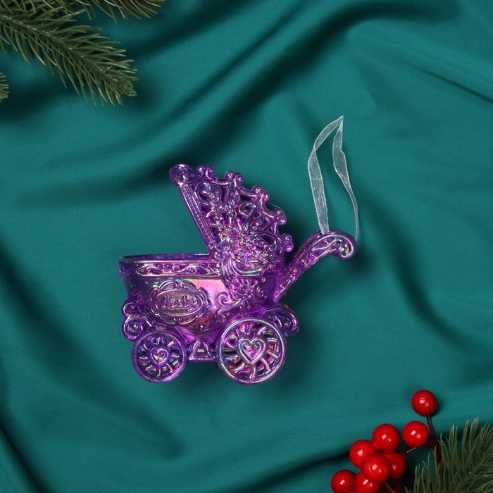 Украшение ёлочное "Колясочка" 10х11 см, фиолетовый перелив
