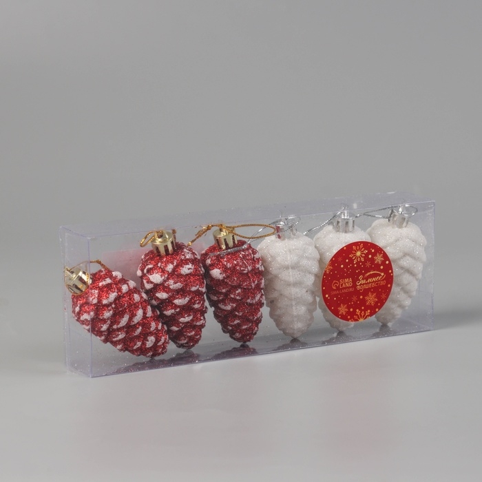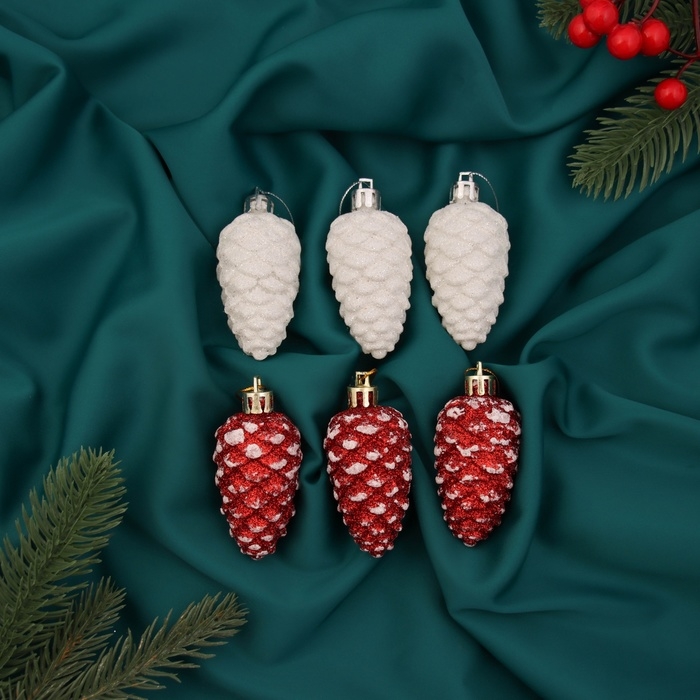 Украшение ёлочное "Шишки ассорти классик" (набор 6 шт) 7,5х3,5 см, красный белый