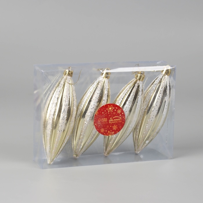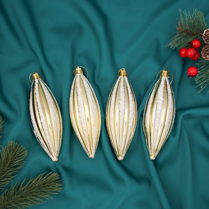 Украшение ёлочное "Сосулька полосатая блеск" (набор 4 шт) 13,5х4,5 см, золотисто-белый