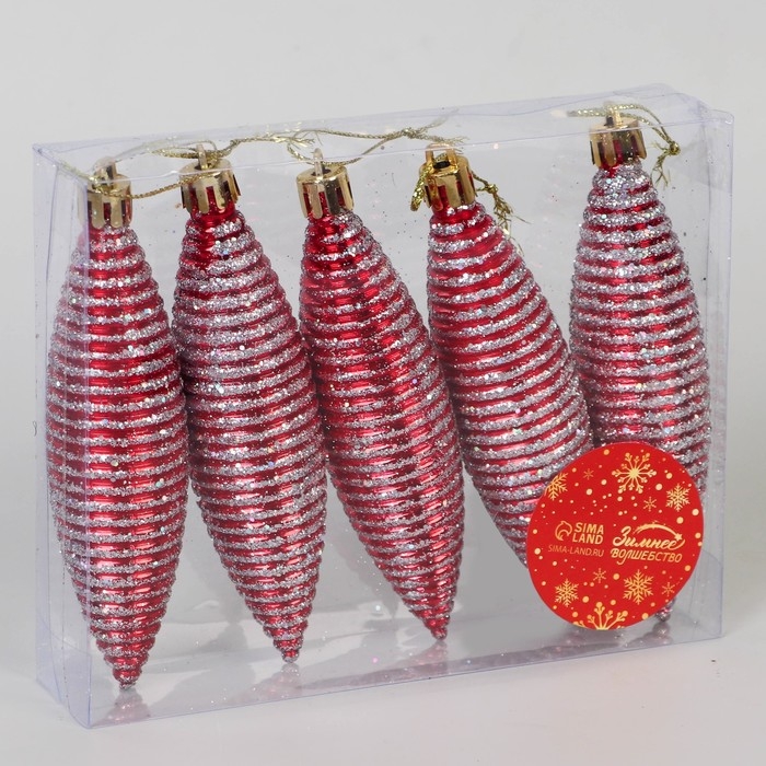 Украшение ёлочное "Сосулька в полоску" (набор 5 шт) 3х11 см, красный