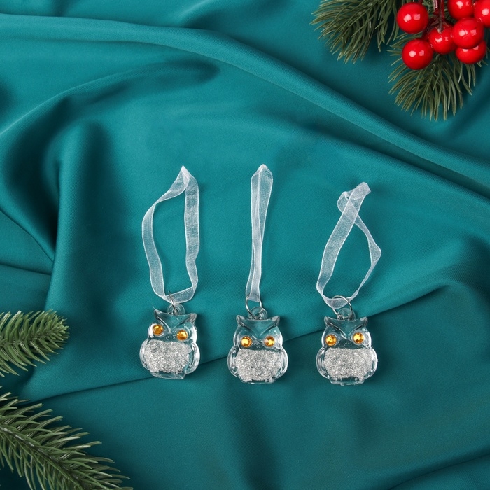 Украшение ёлочное "Совушки " (набор 3 шт) 3,5х3 см, прозрачный