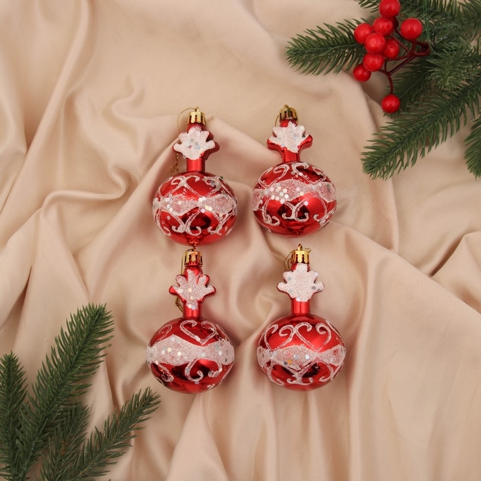 Украшение ёлочное "Сюрприз" (набор 4 шт) 9х5,5 см, красно-белый