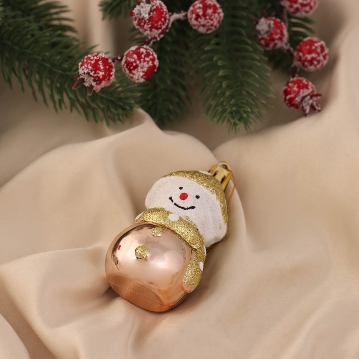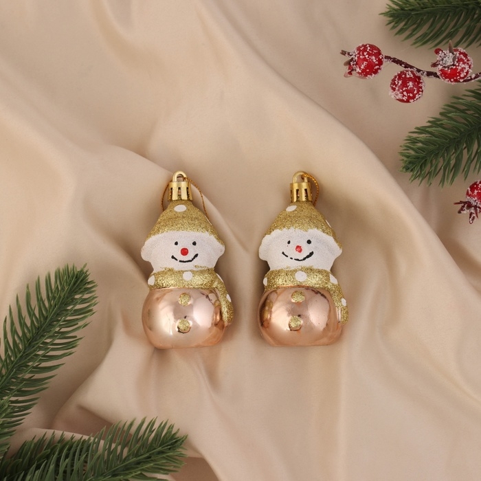 Украшение ёлочное "Улыбчивый снеговик" (набор 2 шт) 8х3,5 см, золото