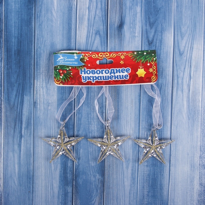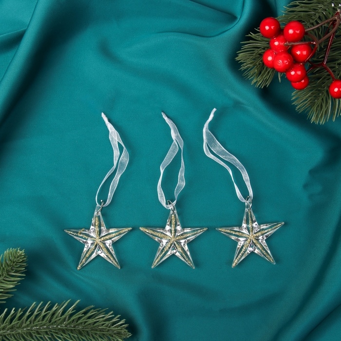 Украшение ёлочное "Звезда" (набор 3 шт) 5х5 см, прозрачный с золотом
