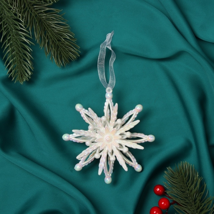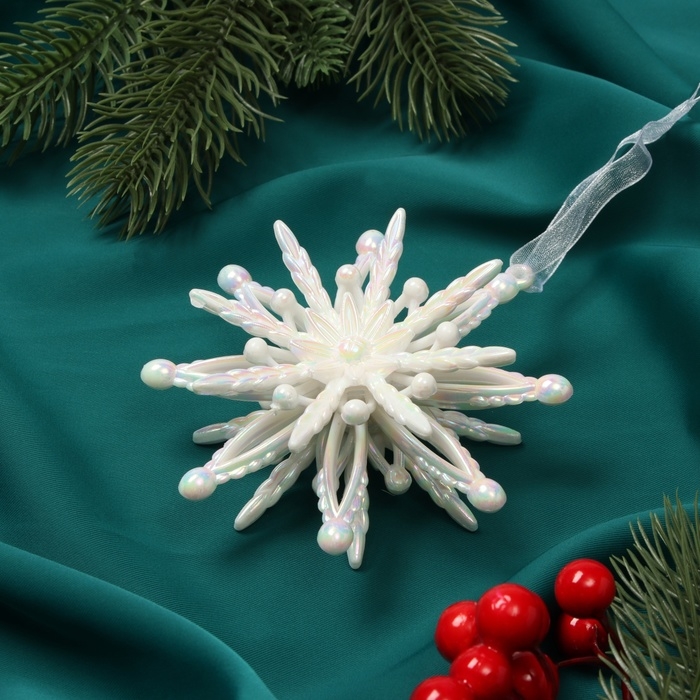 Украшение ёлочное "Звезда объемная" 10х10 см, белый перелив