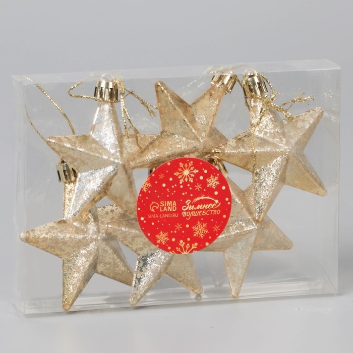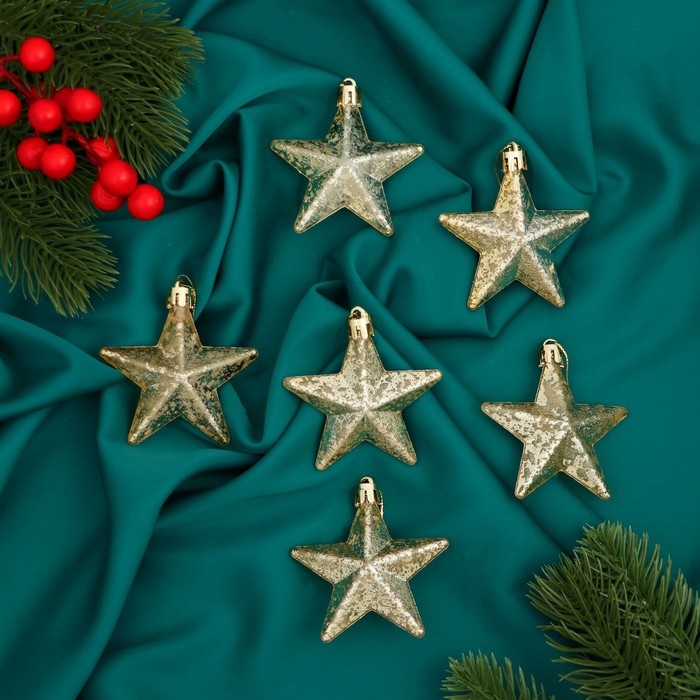 Украшение ёлочное "Звёзды грация" (набор 6 шт) 7х7 см, светлое золото