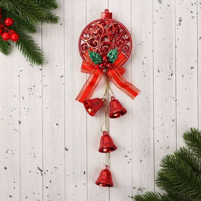 Украшение новогоднее "Уютная сказка" колокольчики узорный шар, 10х27 см, красный