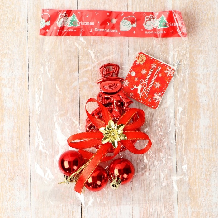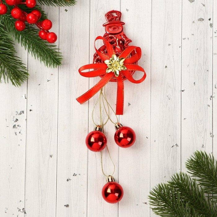 Украшение новогоднее "Уютная сказка" шарики снеговик, 7х23 см, красный