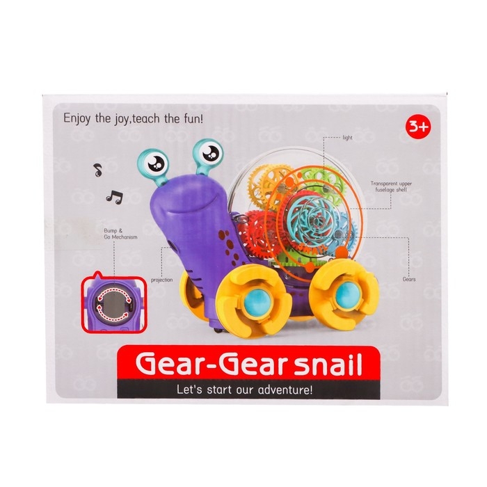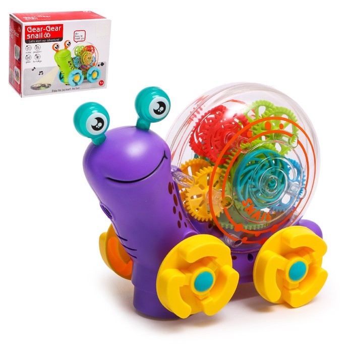 Улитка «Шестерёнки», свет и звук, работает от батареек, цвет МИКС
