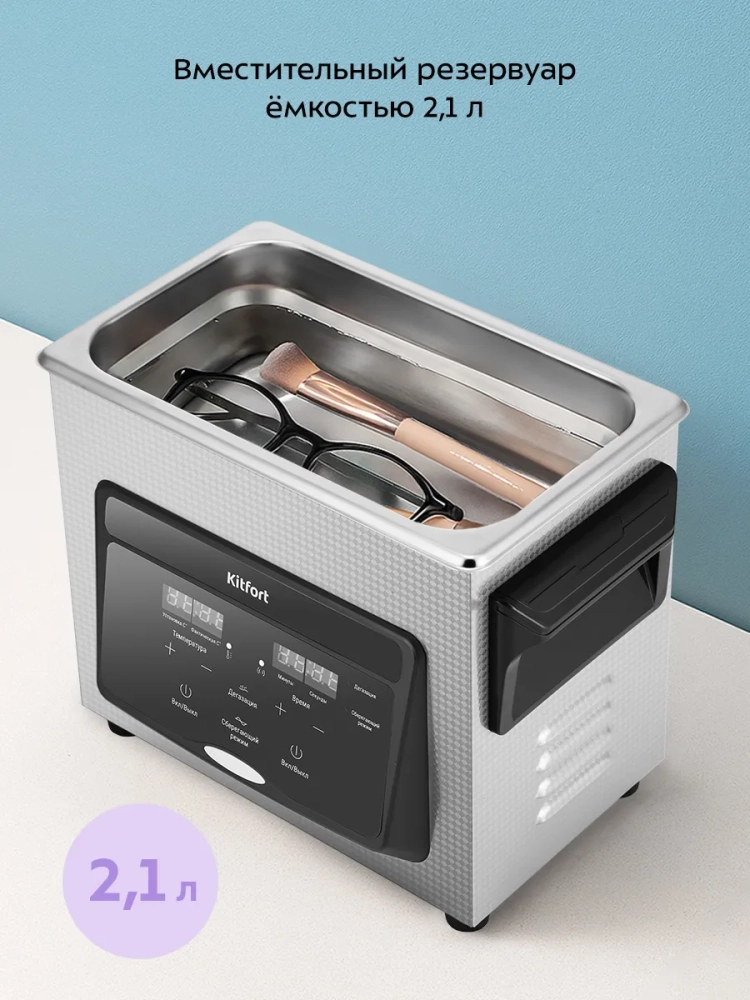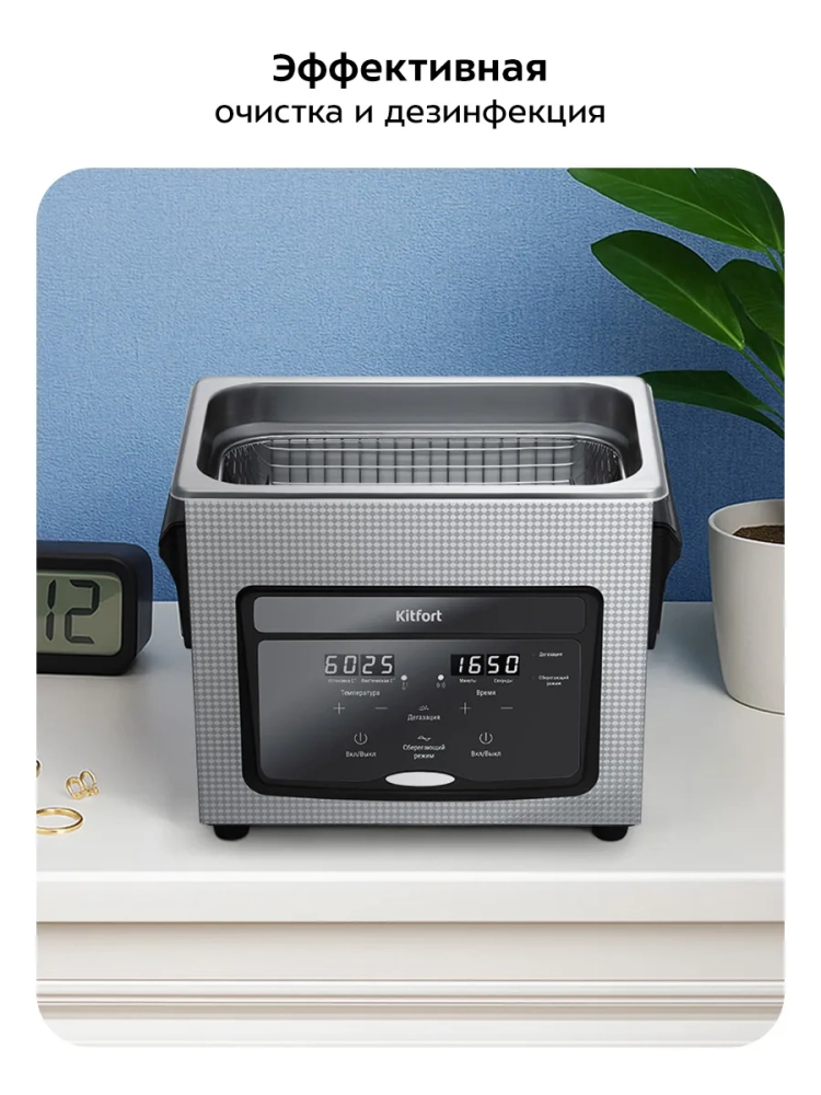 Ультразвуковая мойка Kitfort КТ-6447 поможет эффективно очистить небольшие изделия из металла, пластика и стекла. Ультразвуковая очистка — способ очистки поверхности твёрдых тел в жидкости, при котором в жидкость вводятся ультразвуковые колебания. Применение ультразвука значительно ускоряет процесс очистки и повышает ее качество. В ультразвуковой мойке можно использовать воду, а также чистящие или дезинфицирующие растворы качестве жидкостей.